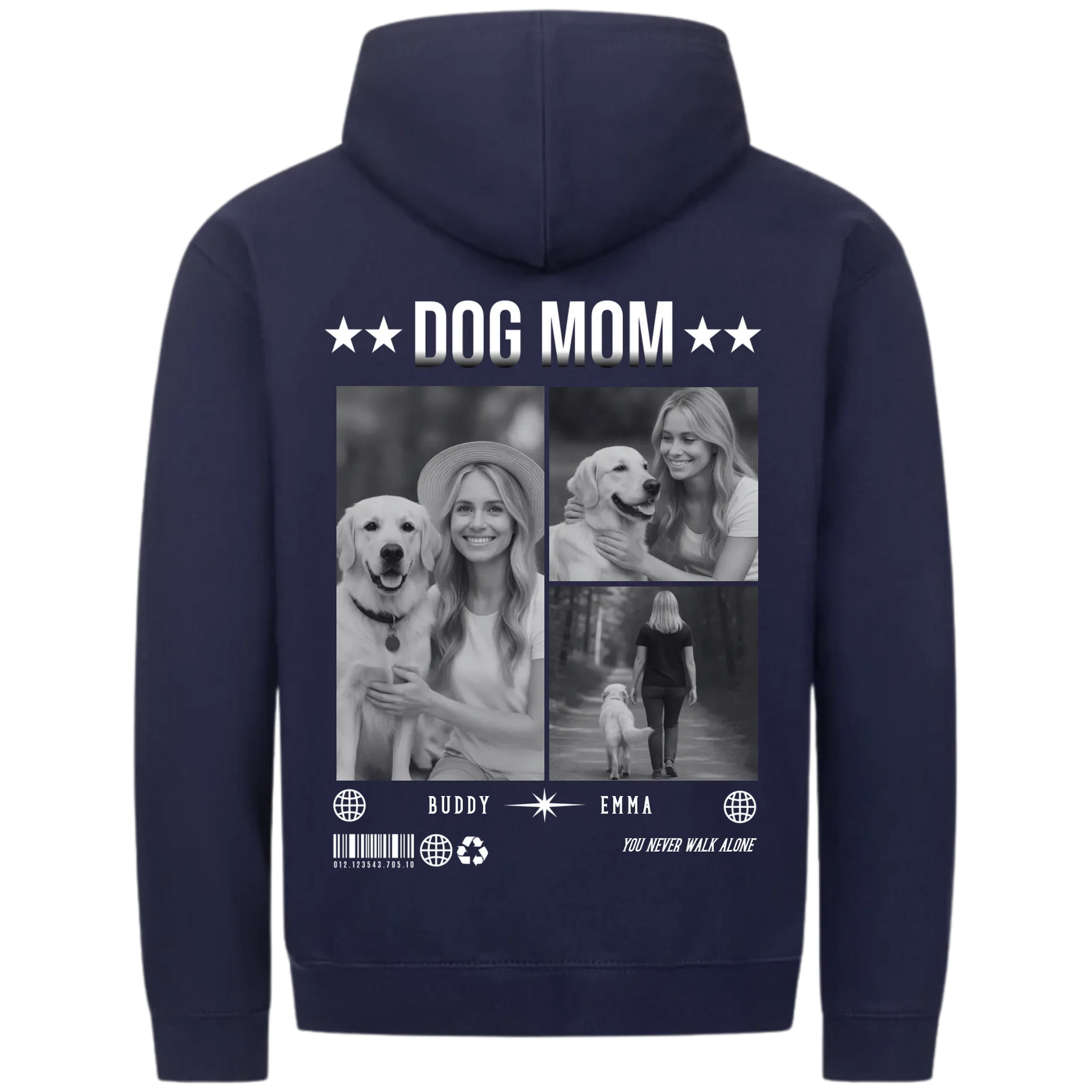 DOG MOM Photo Collage – Personalized Premium Zipper Hoodie with Custom Backprint