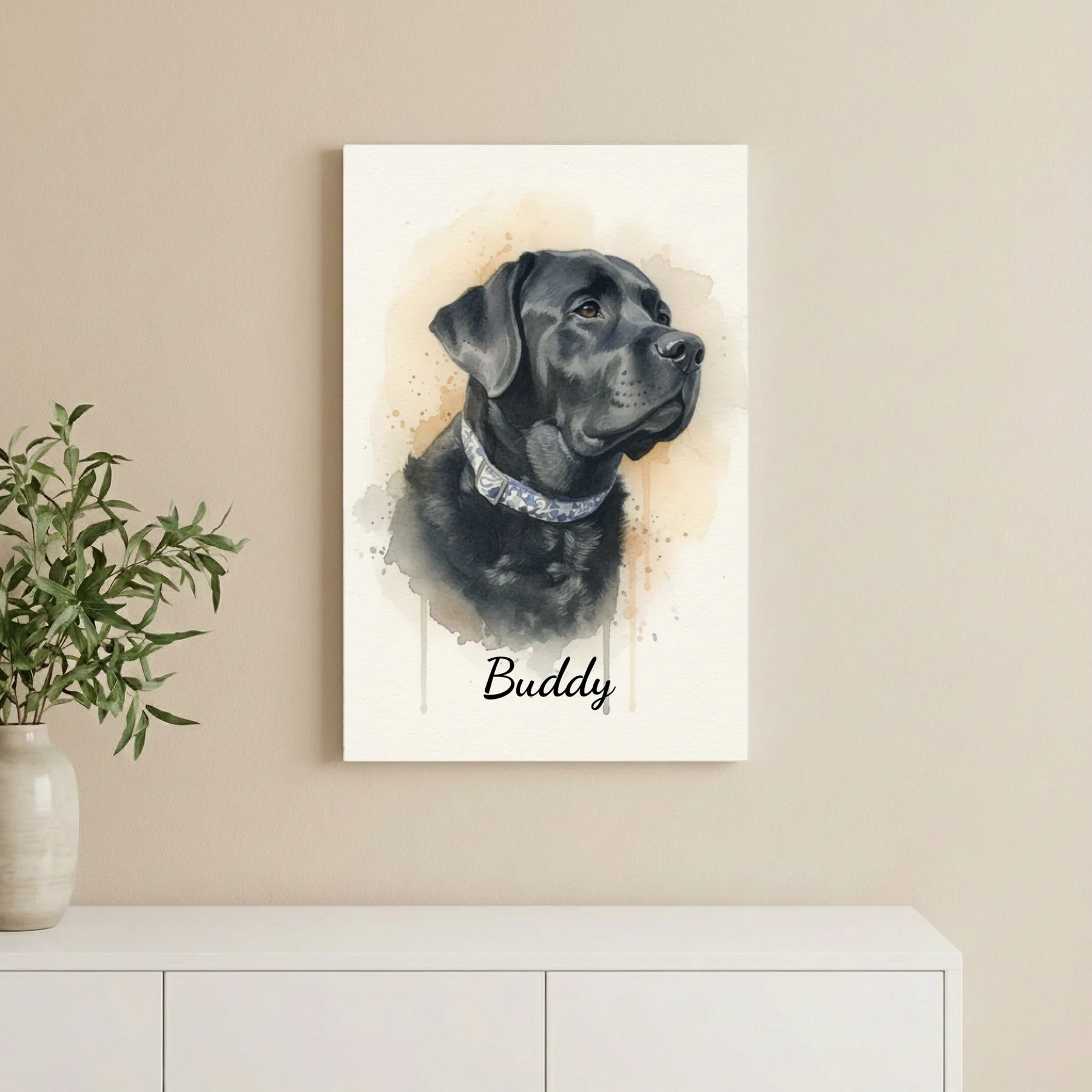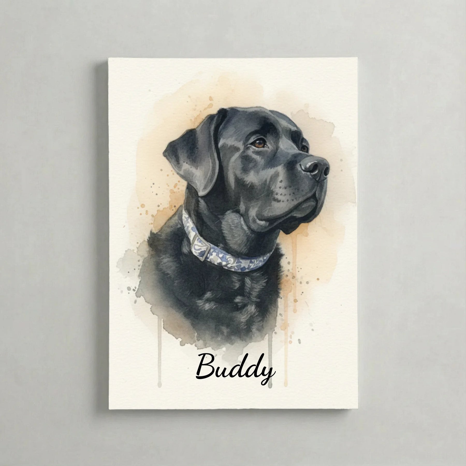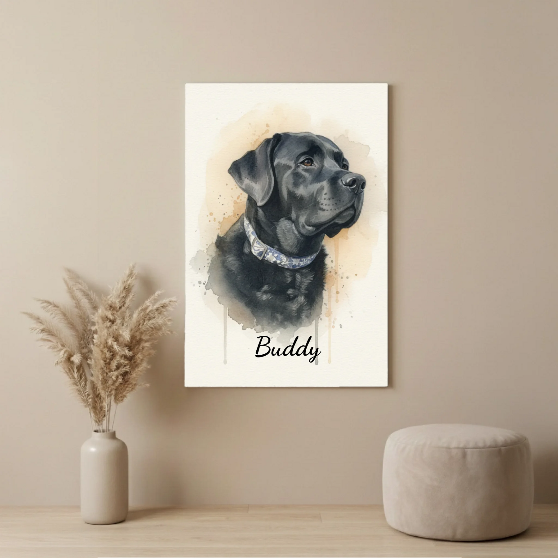 Ein Blick, ein Ausdruck, ein Moment, der für immer bleiben soll. Unsere personalisierte Aquarell-Leinwand verwandelt dein Lieblingsfoto in ein stilvolles Kunstwerk, das die einzigartige Persönlichkeit deines Haustiers einfängt – warm, elegant und modern.